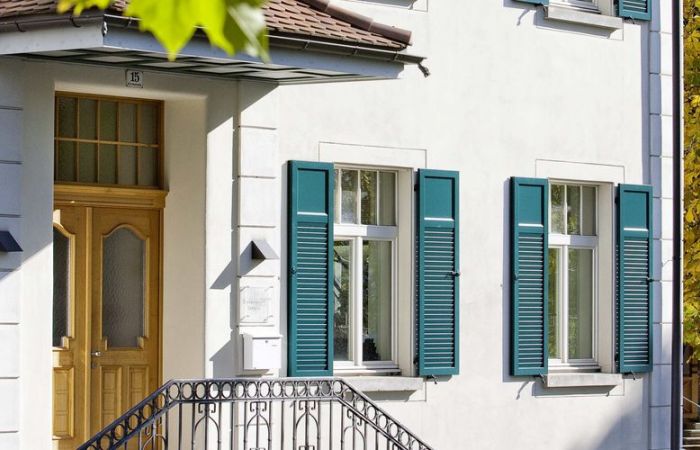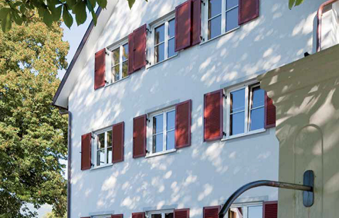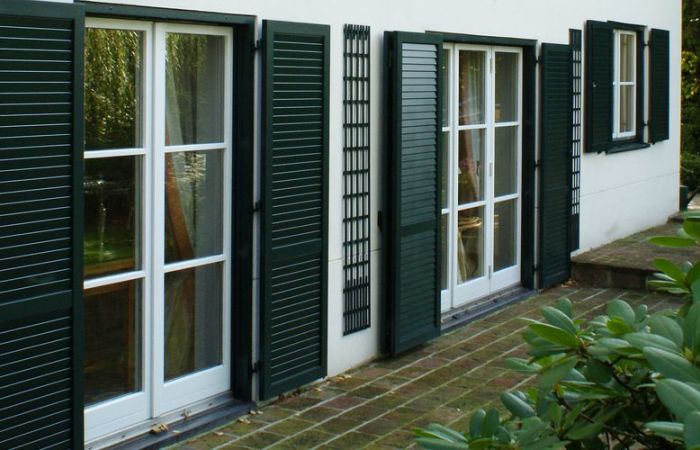 Den Zargenrahmen am Fenster montieren, Klappläden einhängen und fertig!