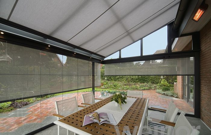Grosse vertikale Glasflächen lassen Sonnenlicht nahezu ungehindert eindringen. Der Effekt oder die Wirkungen davon sind aufgeheizte Innenräume und unangenehme Blendeffekte. Eine aussenliegende Senkrechtbeschattung ist die Lösung: Sonnenschutz, Blendschutz, Windschutz und Sichtschutz in einem.